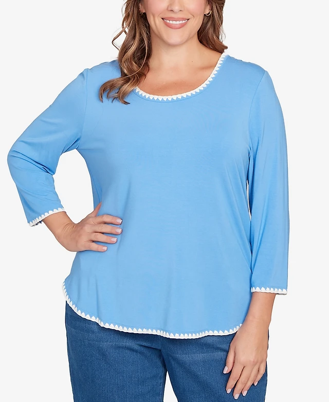 Ruby Rd. Plus Size Contrast Embroidered Solid Knit Top