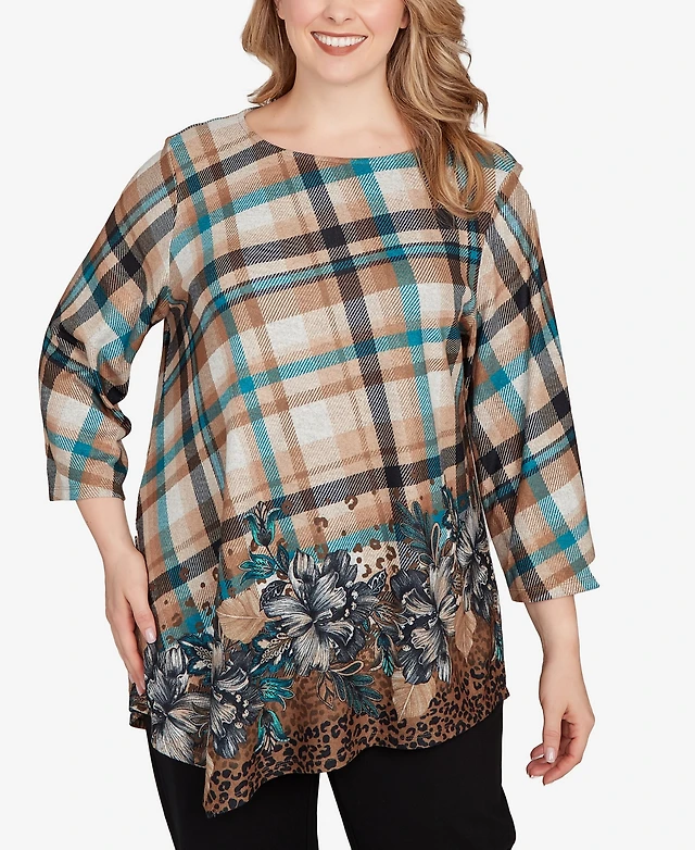Ruby Rd. Plus Size Floral Plaid Cozy Ballet Neck Top