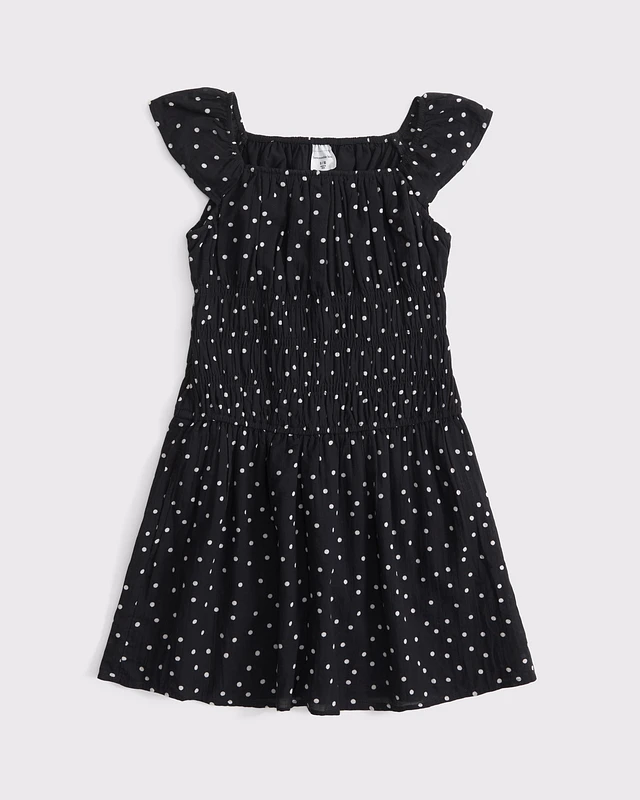 Drop-Waist Smocked Mini Dress