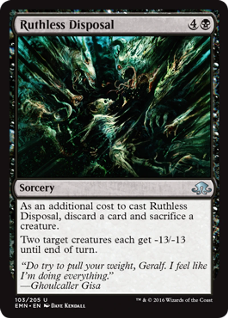 discard a card and sacrifice a creature. Two target creatures get -13/-13 until end of turn.