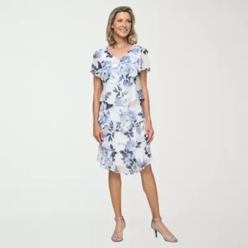 S. L. Fashions Womens Short Sleeve Midi Floral Shift Dress