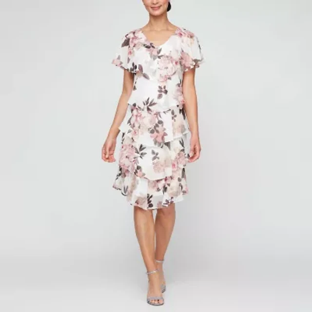 Sl Fashions Women's Short-Sleeve Chiffon A-Line Dress
