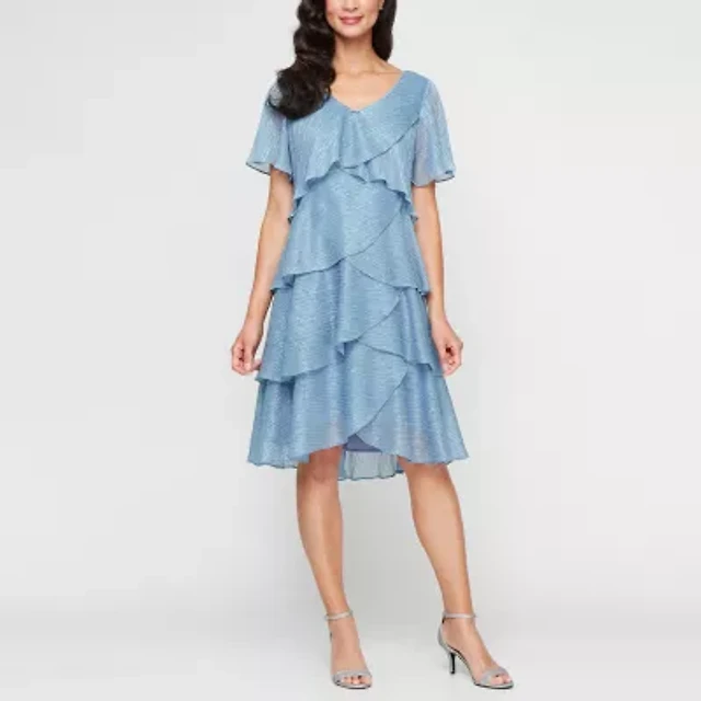 S. L. Fashions Floral Womens Short Sleeve Midi Fit + Flare Dress