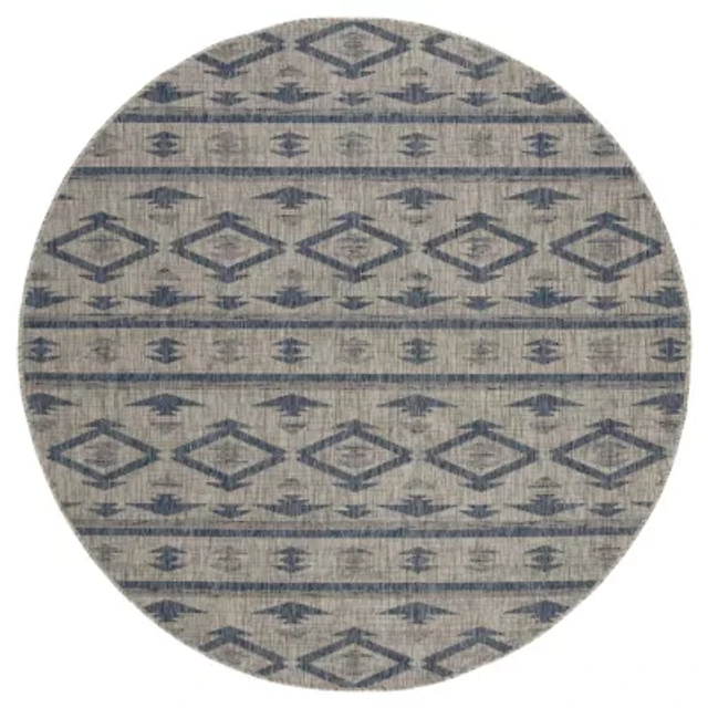 Safavieh Courtyard Collection Easton Geometric Indoor/Outdoor Round Area Rug