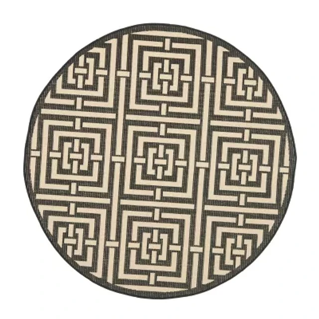 Safavieh Courtyard Collection Darrin Geometric Indoor/Outdoor Round Area Rug