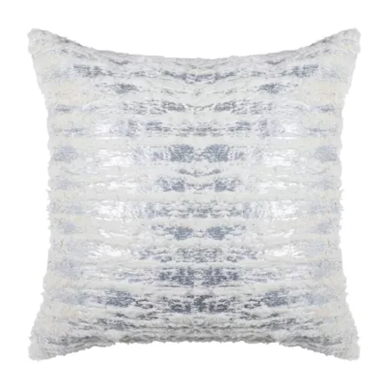 A collage of cool tonal colors and shimmering textures cover the lavish Lorelei throw pillow. Like the sparkle of starlight, this striking accent pillow brightens any space with its superb silver shine and sensational softness. Made with a helpful zipper so cleaning is a breeze.