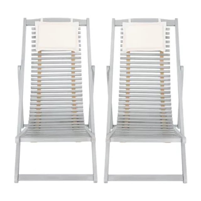 Costway 2 Pcs Folding Wooden Outdoor Lounge Chair Chaise Cushion Pad Pool Deck