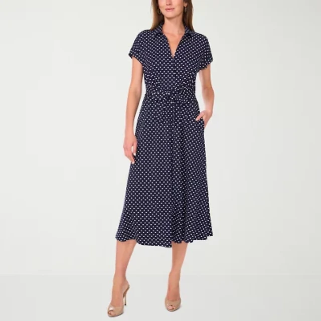 Sam And Jess Womens Short Sleeve Dots Midi Fit + Flare Dress