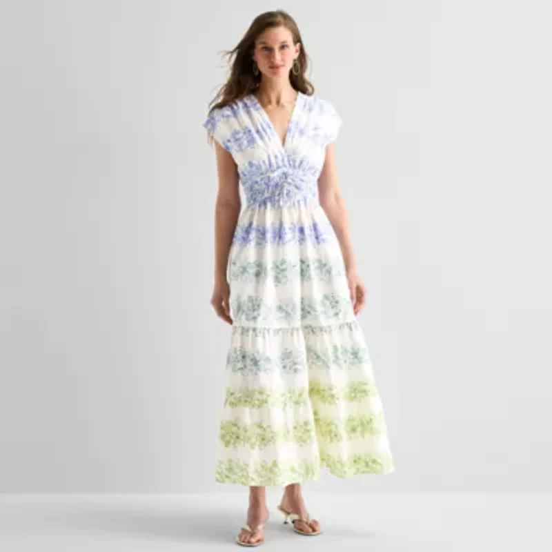 Sam And Jess Womens Short Sleeve Ombre Maxi Dress