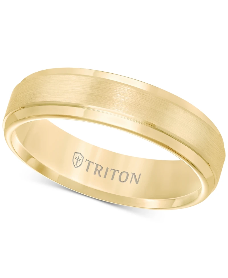 Polish your look with eternal style. This timeless men's wedding ring by Triton features a comfort-fit tungsten carbide band (6mm).