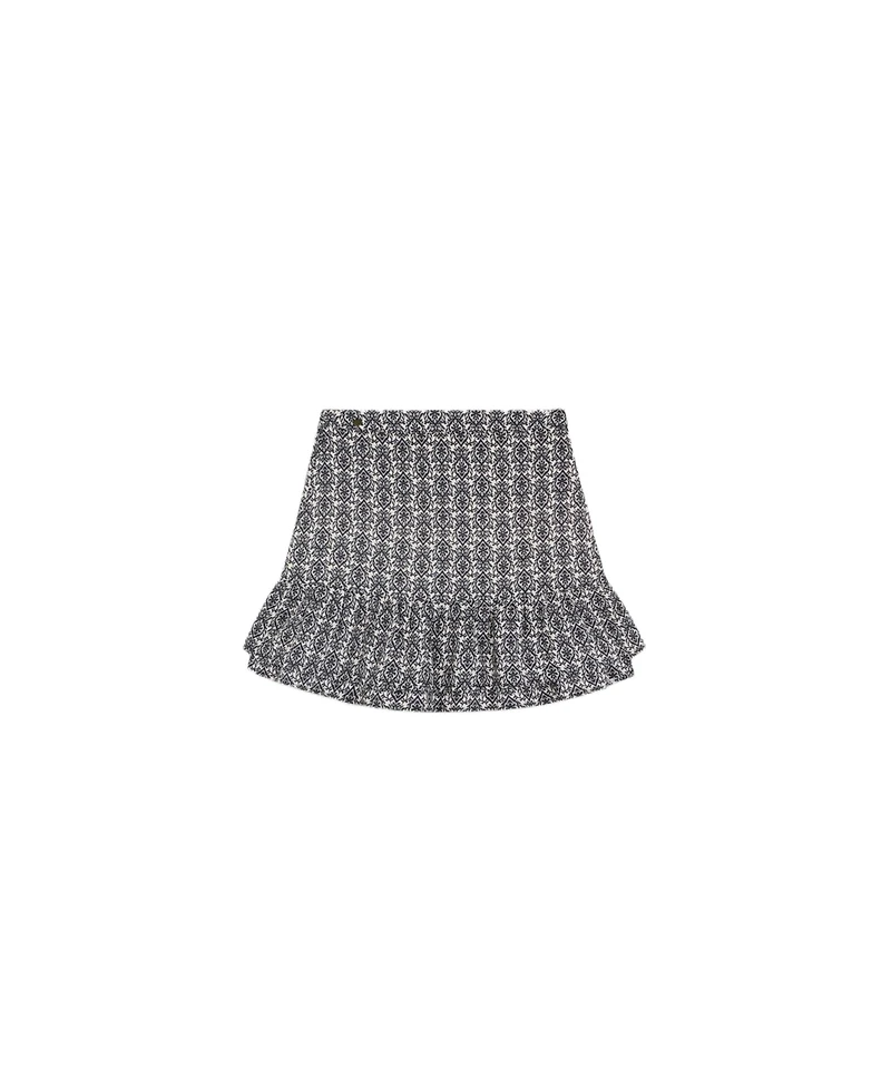 Printed mini skirt made of 100% viscose and side fastening and ruffles at the hem