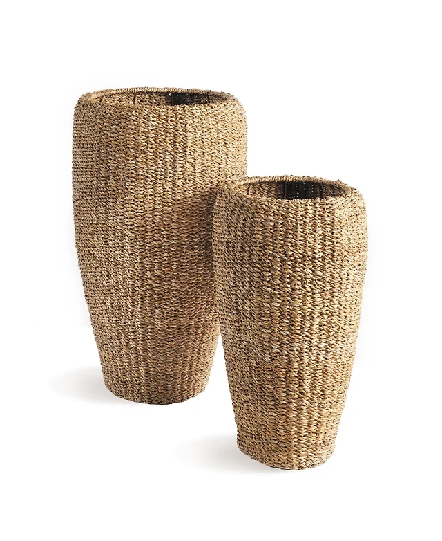 Storied Home Round Hand-Woven Rattan Round Planters, Grey, Set of 2