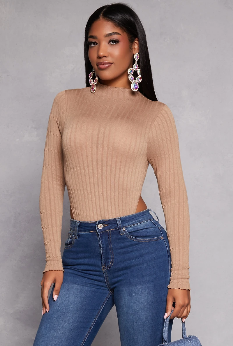Elevate your everyday style with our Seamless Cable Knit High Cut Bodysuit. Designed to hug your curves and keep you comfortable all day long, this chic piece combines a cozy cable knit texture with a sleek, shaped silhouette. The mock neck adds a touch of sophistication, while the long sleeves make it perfect for layering or wearing on its own. Whether you're heading out or lounging in style, this bodysuit is your new go-to for effortless fashion that feels as good as it looks.