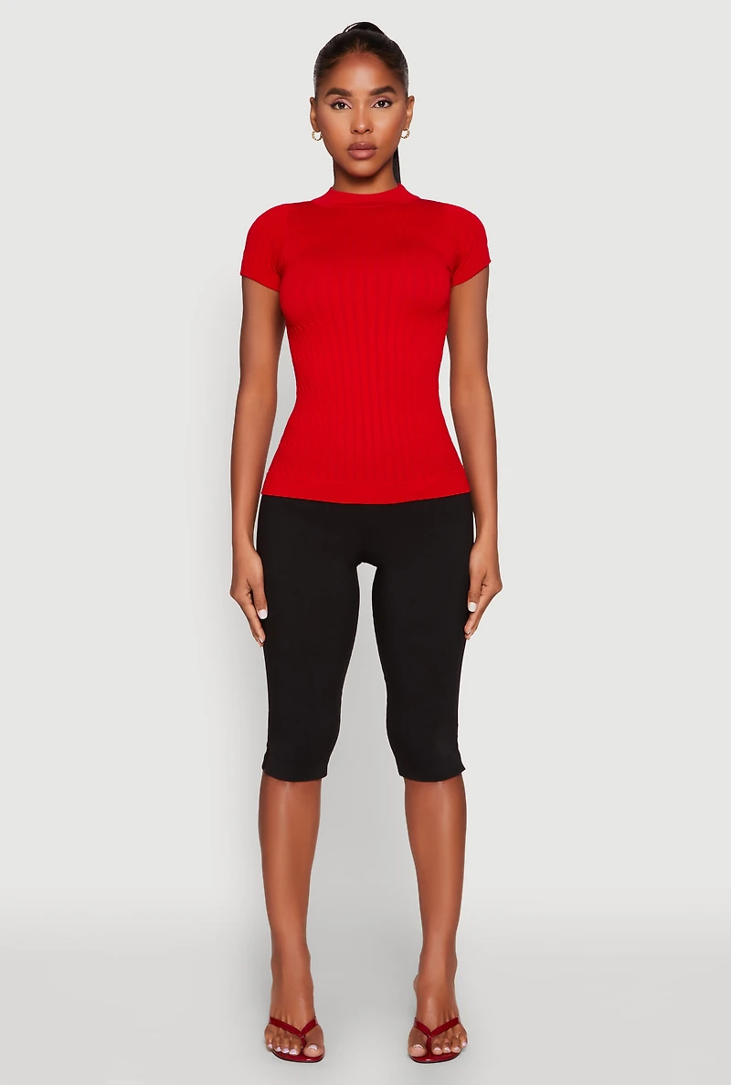 Seamless Short Sleeve Mock Neck Top