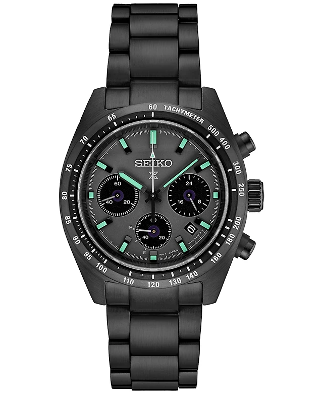 Seiko Men's Chronograph Solar Prospex Speedtimer Black Ion Plated Stainless Steel Bracelet Watch 39mm