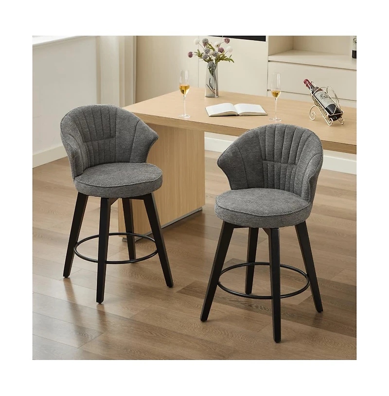 Upgrade your space with this set of 2 swivel bar stools, designed for both style and comfort. Featuring soft chenille upholstery, a high-density foam cushion, and an ergonomic wide backrest, these bar chairs provide exceptional support for long sitting sessions. The 360° swivel seat allows for effortless movement, while the sturdy solid wood legs ensure durability. Perfect for kitchen islands, home bars, and dining areas, these modern counter-height chairs blend seamlessly with any decor.