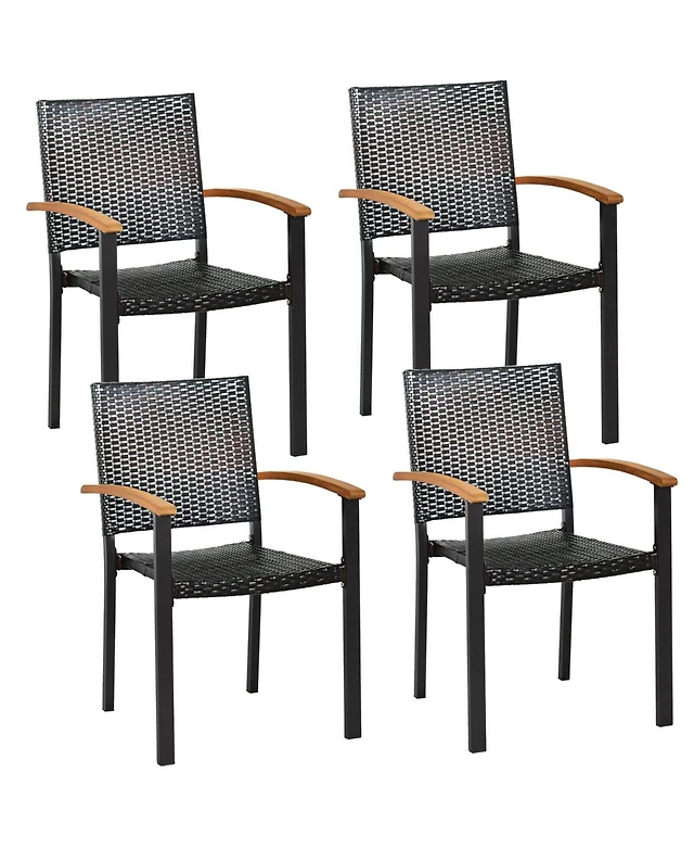Costway Set of 4 Outdoor Patio Pe Rattan Dining Chairs Armrest Stackable Garden