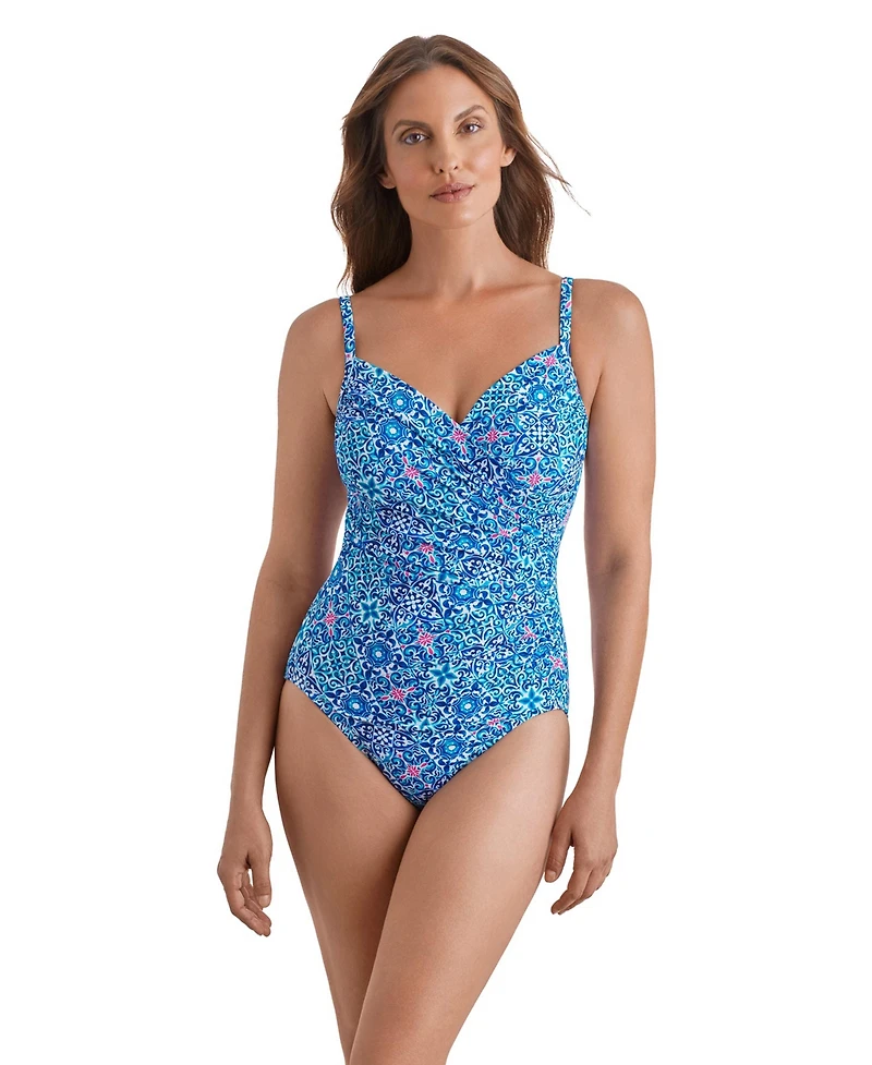 ShapeSolver Women's Surplice Neck One-Piece Swimsuit in San Juan, PR