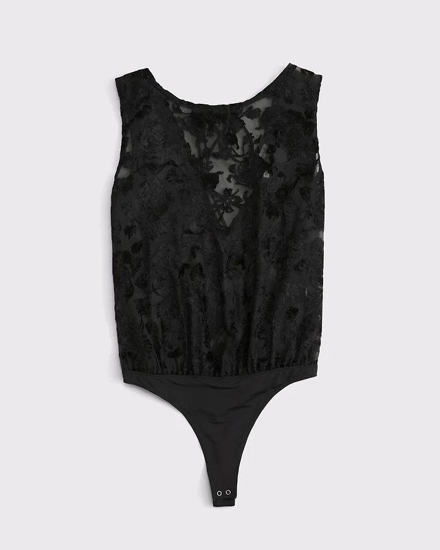 Long-Sleeve Mesh Crepe Shell Bodysuit