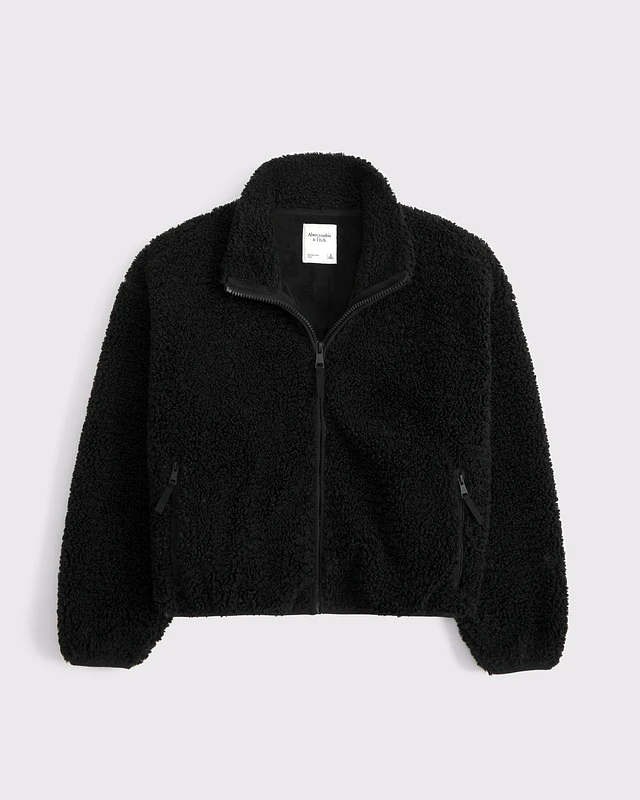 Sherpa-Lined Cropped Twill Workwear Jacket