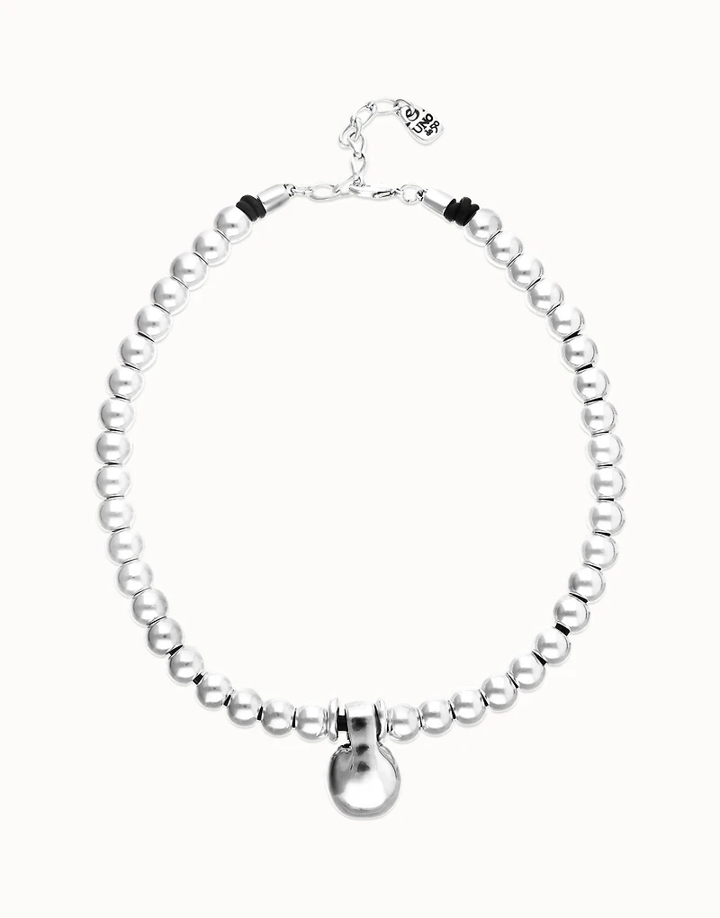 This necklace captures movement through repetition: a succession of rounded beads that move like a steady rhythm, creating a gentle but unstoppable energy around your neck.