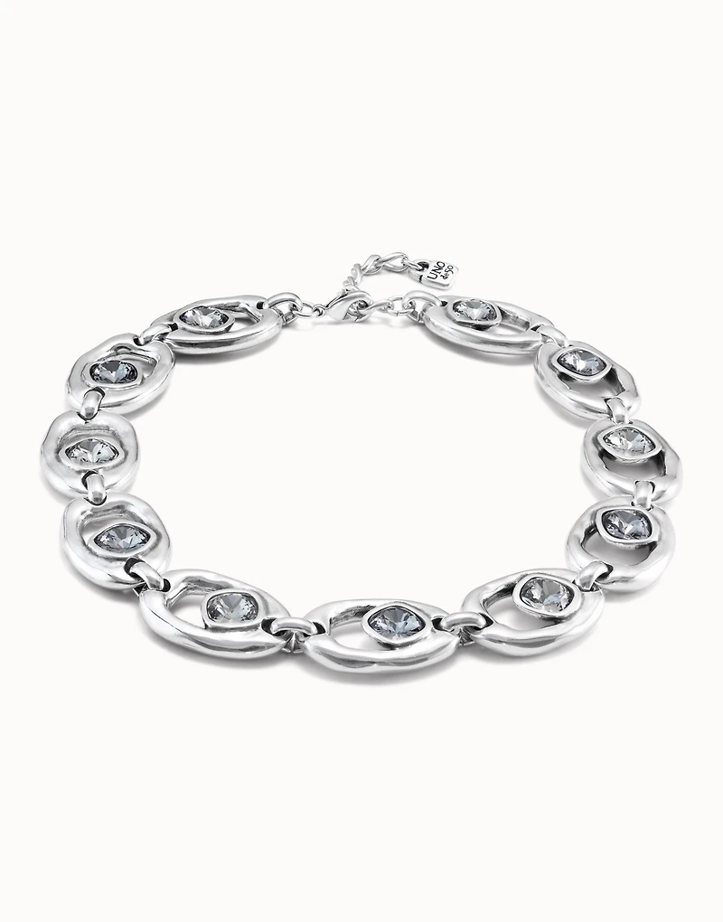 Short oval link chain necklace with crystal