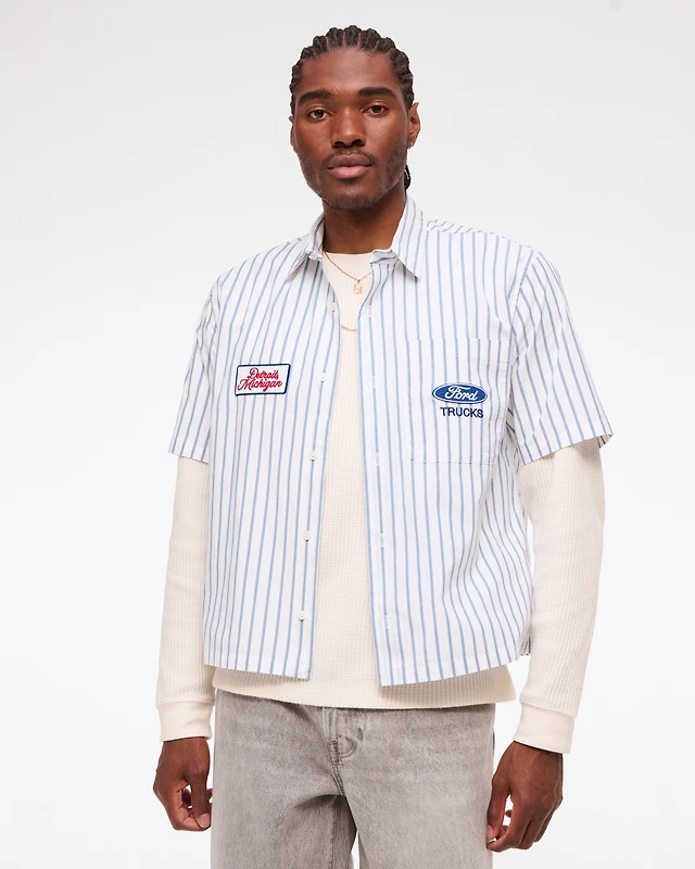 Short-Sleeve Cropped Ford Button-Up Shirt