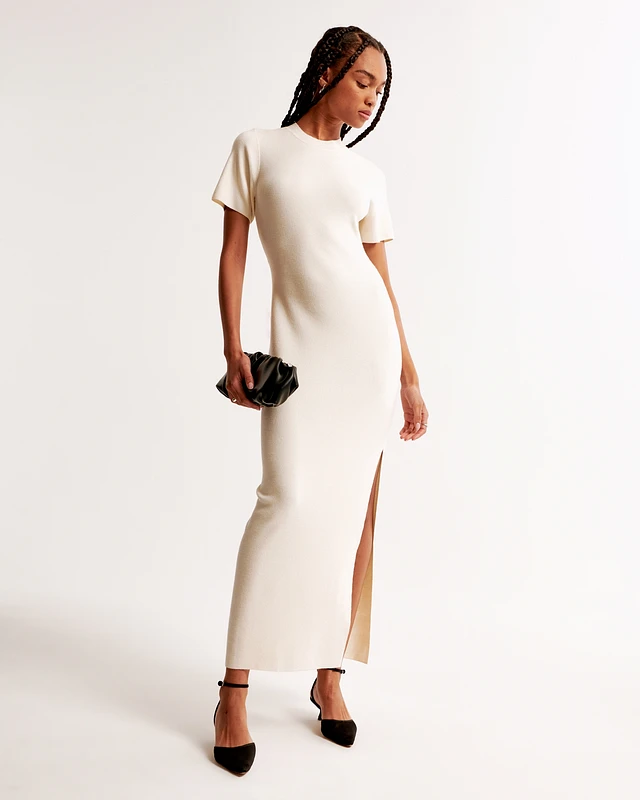 Short-Sleeve Maxi Sweater Dress