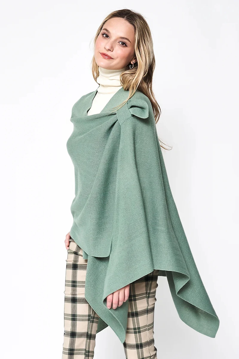 Cozy and chic ruana with a loop to adjust and keep in place.