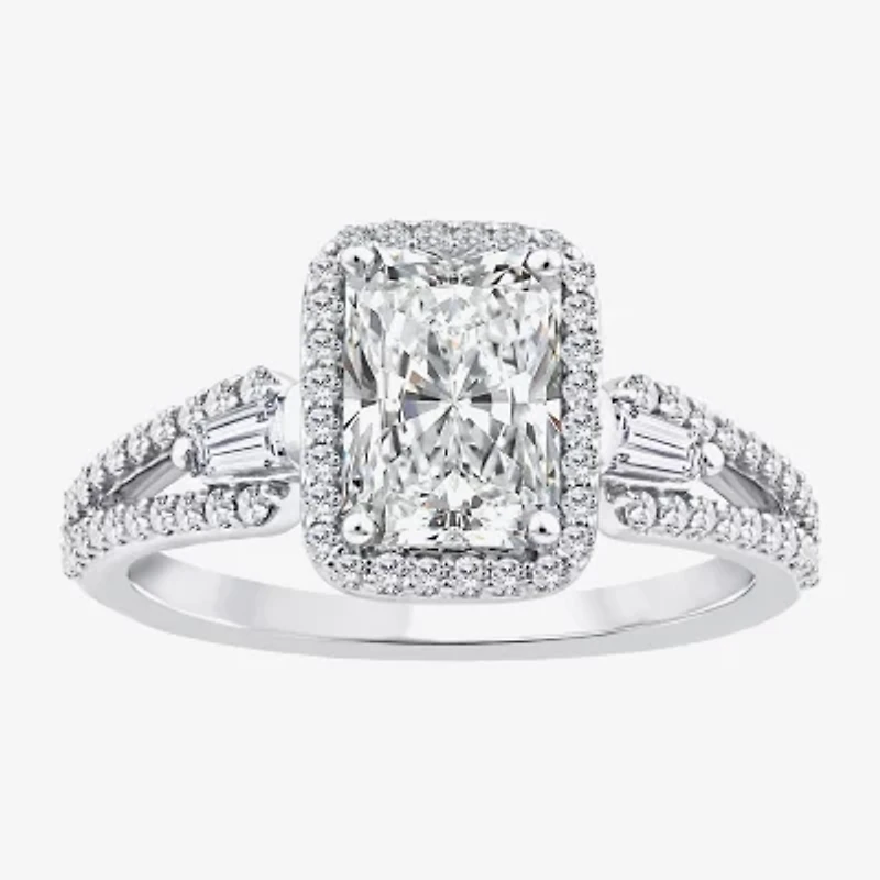 Signature By Modern Bride (F / Vs2) Womens 2 CT. T.W. Lab Grown White Diamond 10K Gold Rectangular Side Stone Halo Engagement Ring
