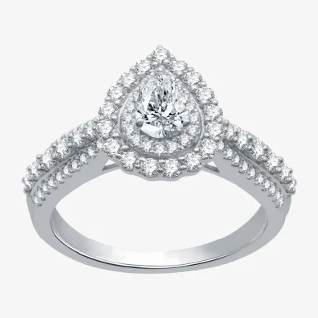 Signature By Modern Bride (H-I / I1) Womens 1 CT. T.W. Lab Grown White Diamond 10K Gold Pear Side Stone Halo Engagement Ring