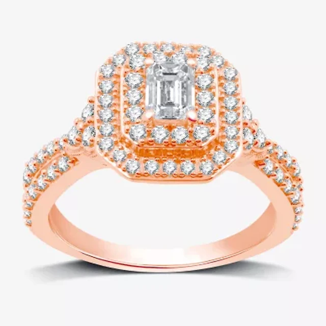 Signature By Modern Bride (H-I / I1) Womens 1 1/4 CT. T.W. Lab Grown White Diamond 10K Gold Side Stone Halo Engagement Ring