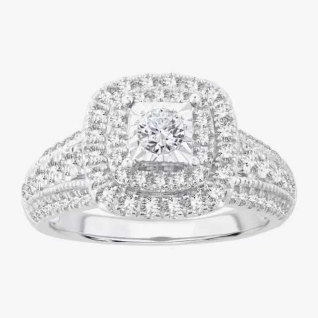 Signature By Modern Bride Womens 1 CT. T.W. Natural White Diamond 14K Gold Cushion Side Stone Halo Engagement Ring