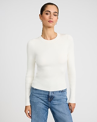 The perfect basic for endless wear, this fitted sweater is complete with a crew neckline and ribbed texture.