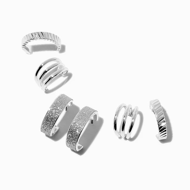 Silver Glitter & Textured Hoop Earring Stackables Set - 3 Pack