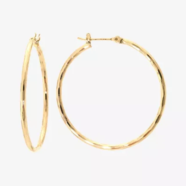 Silver Reflections Diamond Cut Womens 14K Gold Over Brass 30mm Hoop Earrings