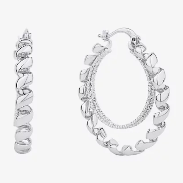 Silver Reflections Double Womens 38mm Hoop Earrings