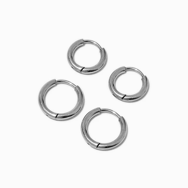 Silver-tone Tubular Hoop Earring Stackables Set - 3 Pack