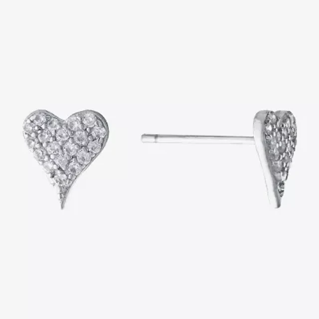 Silver-tone Cubic Zirconia Heart Stud Earrings