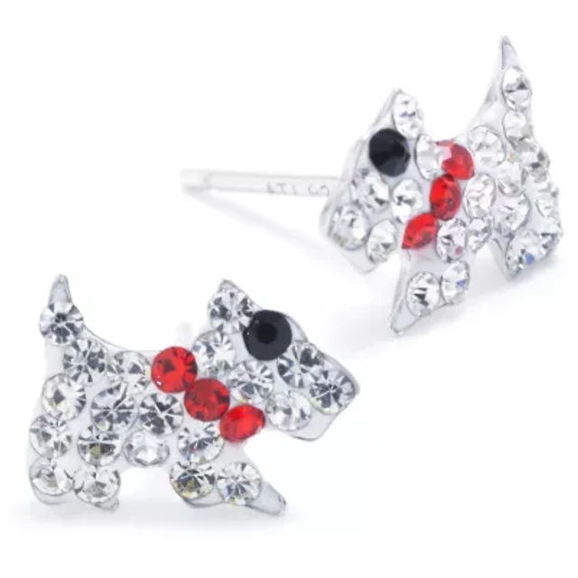 Silver Treasures Dog White Crystal Sterling Silver 7.5mm Stud Earrings