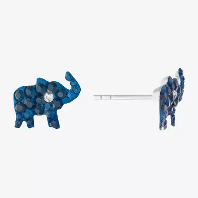 Silver Treasures Elephant Crystal Sterling Silver 7.8mm Stud Earrings