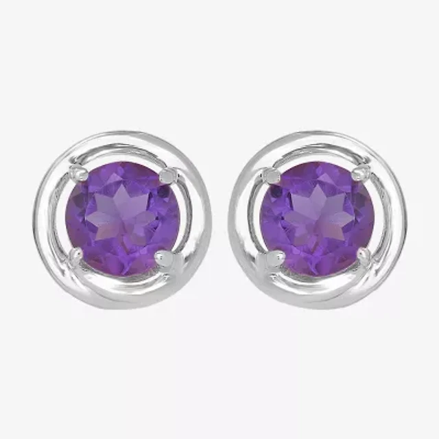 Silver Treasures Genuine Stone Sterling Silver Stud Earrings