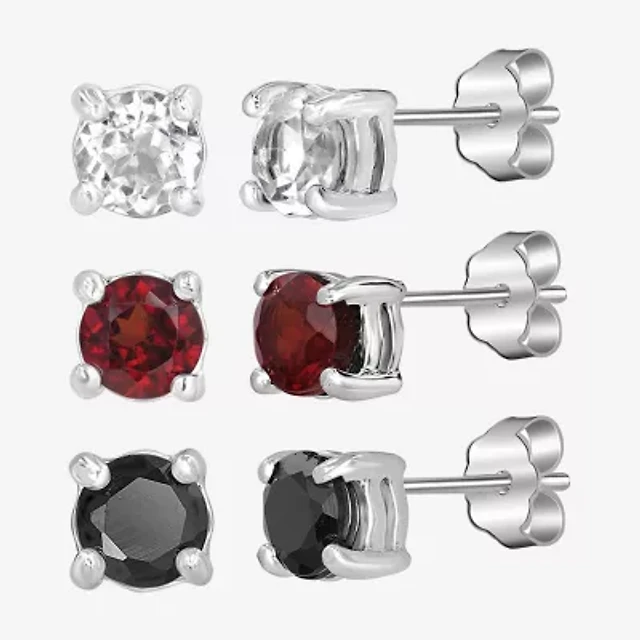 Silver Treasures Womens Multi Color Cubic Zirconia Sterling Silver 3 Pair Earring Set