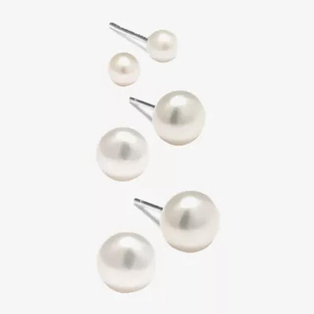 Silver Treasures Cultured Freshwater Pearl Womens White Sterling Silver 3 Pair Earring Set