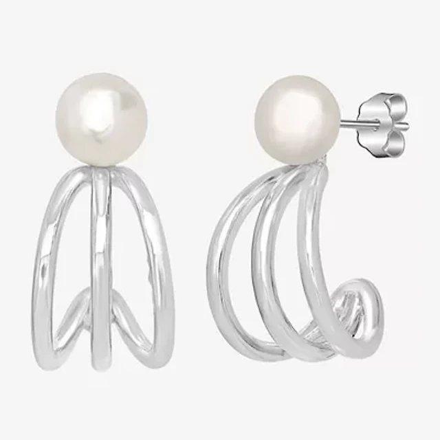 Silver Treasures Cultured Freshwater Pearl Womens White Sterling Silver 15.2mm Hoop Earrings