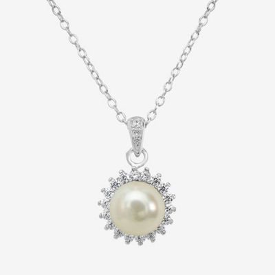 Silver Treasures Womens White Cultured Freshwater Pearl Sterling Silver Round 16 Inch Pendant Necklace