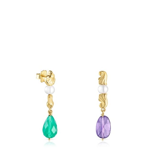 Silver Vermeil, Silver and Dark Silver TOUS Good Vibes Earrings with Gemstones