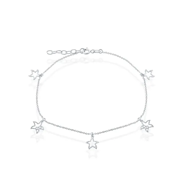 Simona Sterling Silver Dangling Starfish Cut-Out Anklet