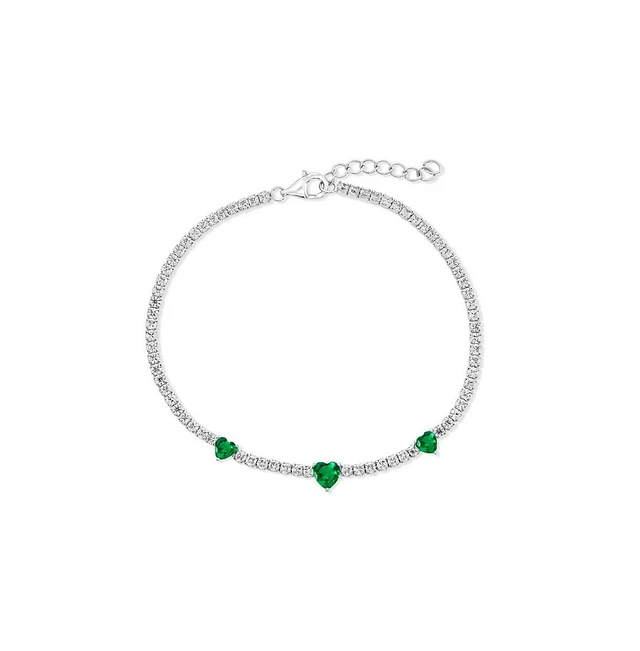 Simona Sterling Silver, Heart Cz Tennis Bracelet