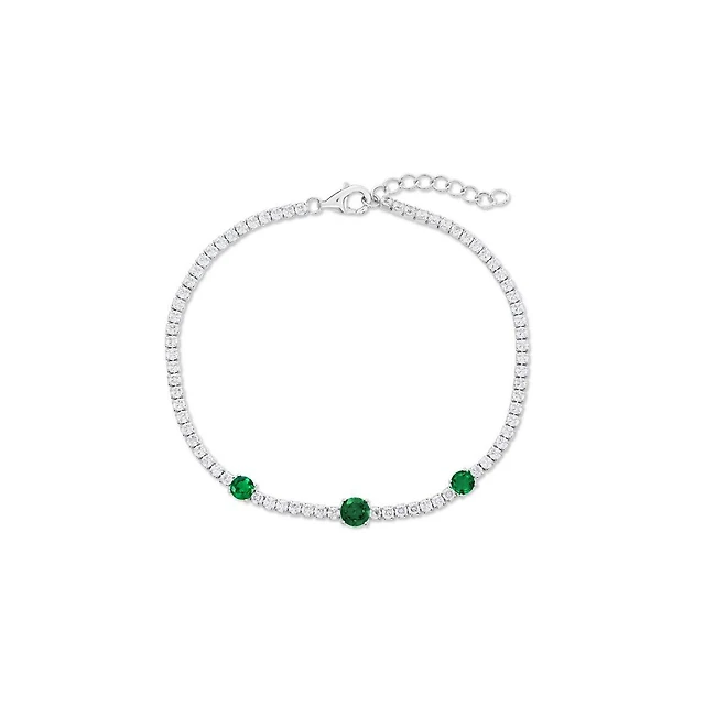 Simona Sterling Silver, Rectangle Bezel-Set & Round Cz Gold Plated Bracelet - Emerald